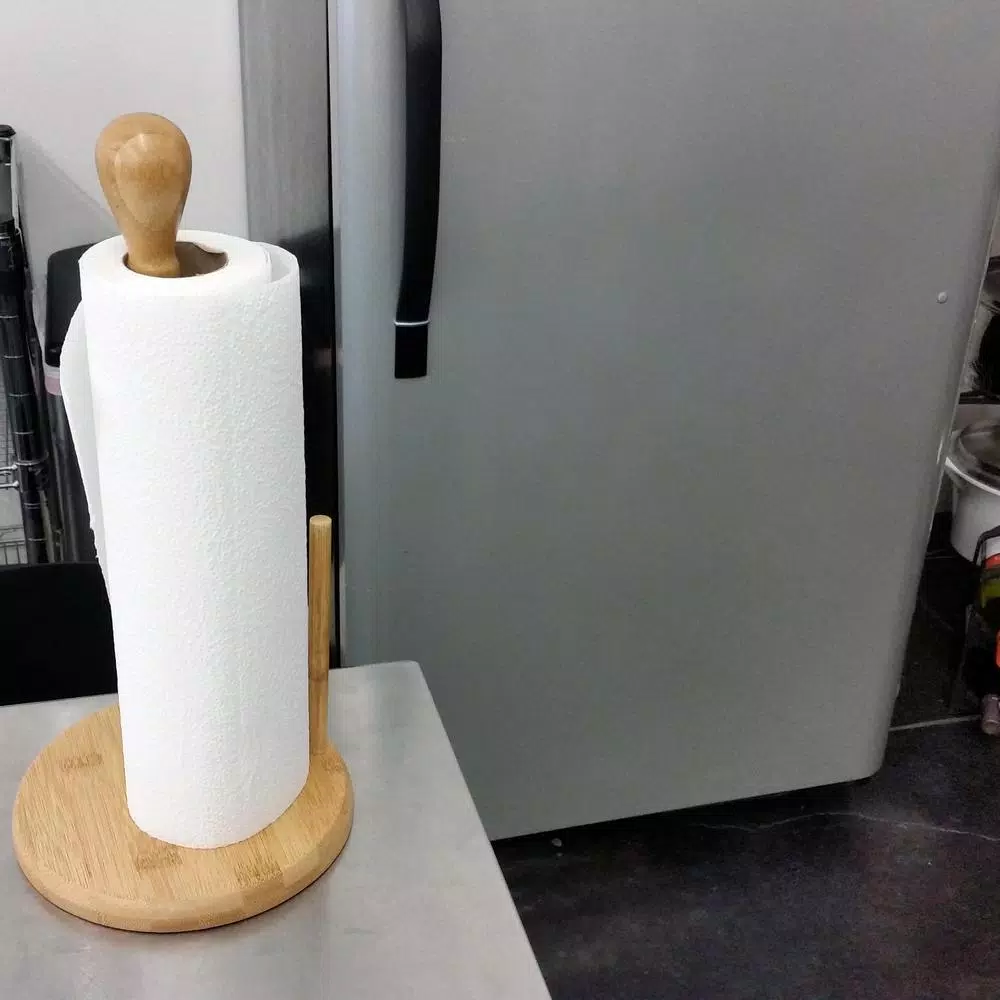 The Bamboo paper towel holder is totally efficient. Tear a single paper towel easily with just one hand. The edge is always accessible and will not unravel.