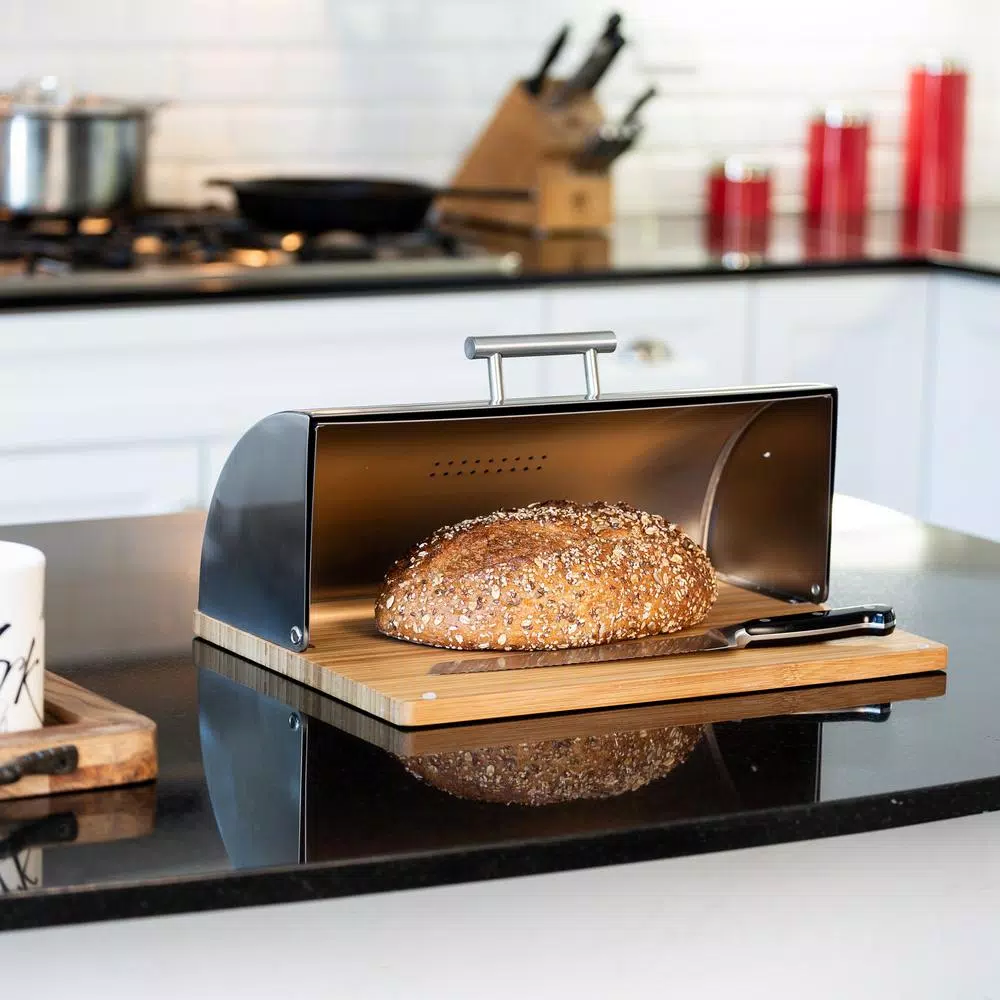 There are bread lovers and then there are bread lovers. For the latter, this bread box provides a place to keep your favorite loaf of sourdough, homemade, focaccia, French you name it fresh as can be. Its easy access lid lets you dive right in and cut a piece when the urge strikes. And speaking of cutting, its base is actually a durable, stain-proof cutting board made of bamboo. And whether your kitchen aesthetic is farmhouse, rustic, modern or traditional, this stainless-steel bread box fits right in, like a piece of Italian bread at your familyโs Friday night pasta dinner. Oh, and in addition to steering clear of stale bread, you can also store donuts and other pastries in here, too.