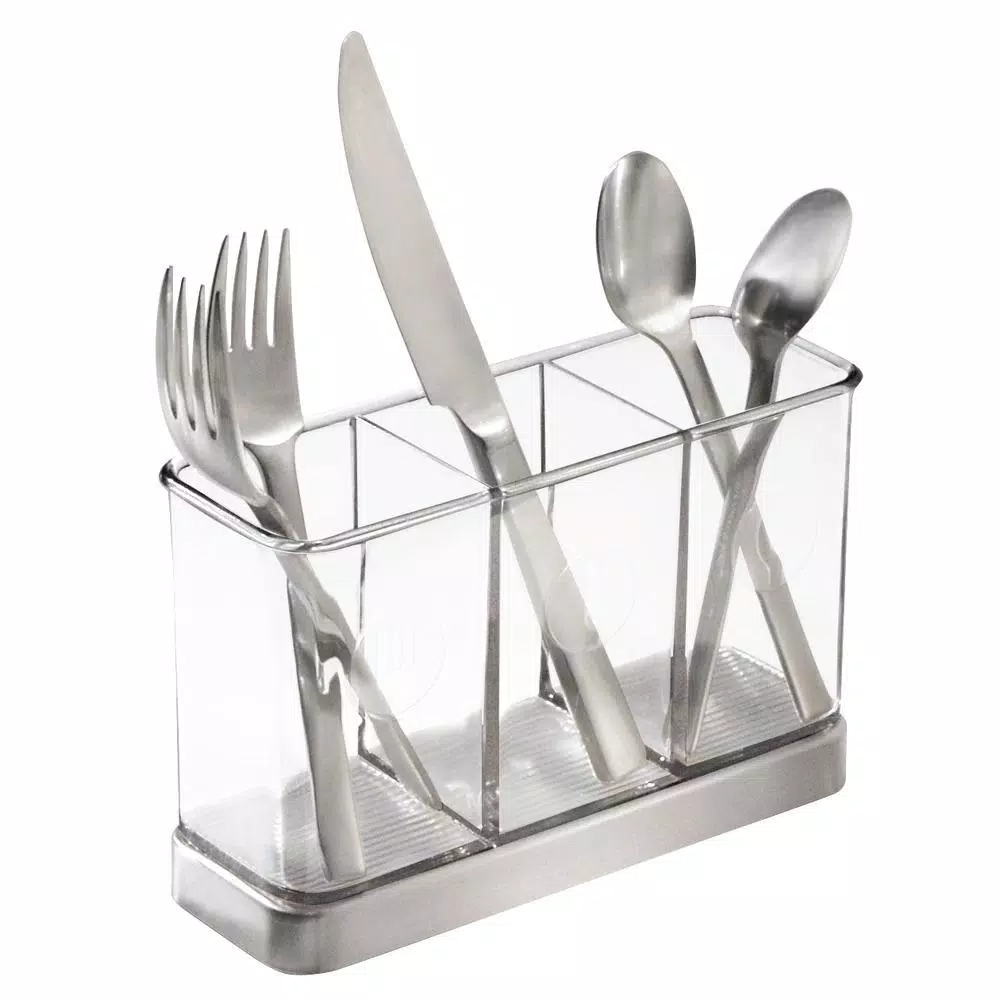 The interDesign Forma 2 Flatware Organizer is perfect for buffets and entertaining. With 3 separate compartments, this piece holds all of the necessary flatware. Brushed stainless steel base.