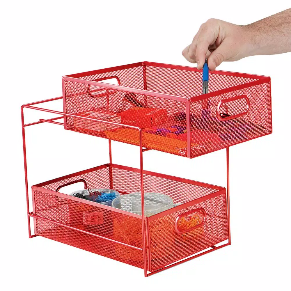 Make way for more space in your kitchen cabinet with this amazing Mind Reader Modern Red Metal Flatware Organizer Utensil Caddy.