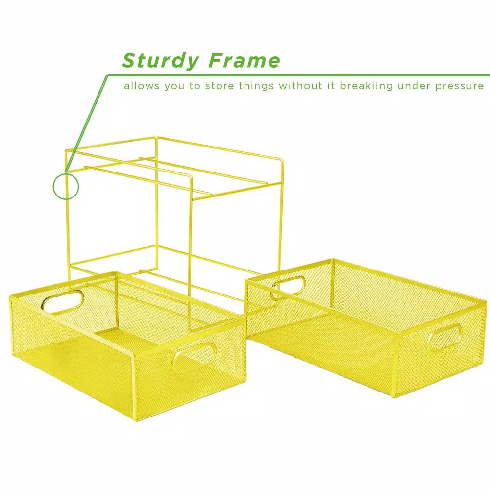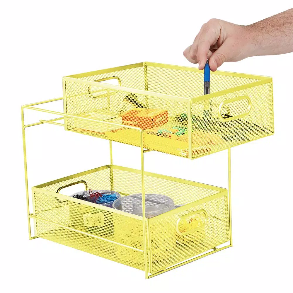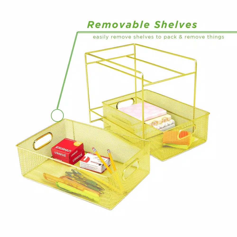- SPACE SAVER: Your office space should be a place optimized for productivity. Thatโs why this two-tiered mesh organizer keeps things neatly stored while saving you space and keeping your office organized and ready for work.