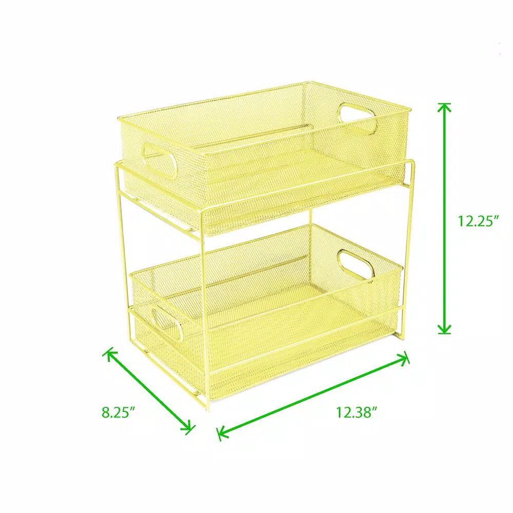 - TWO TIER DESIGN: Configured to provide you with two vertical space-saving wire baskets that are able to store items in the bathroom as tall as shampoo bottles or as long most baking tools for the kitchen. Take out and re-arrange these bins as many times as you need within their sturdy steel metal mesh frame.