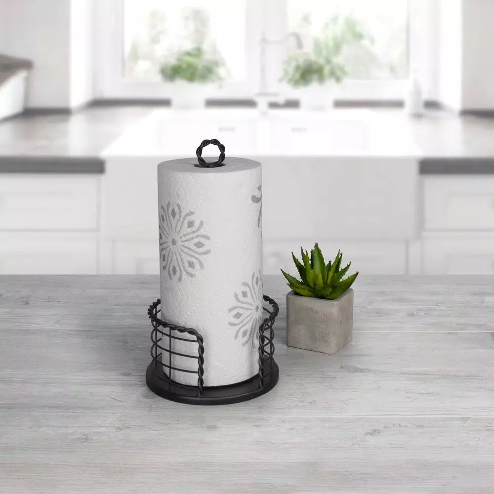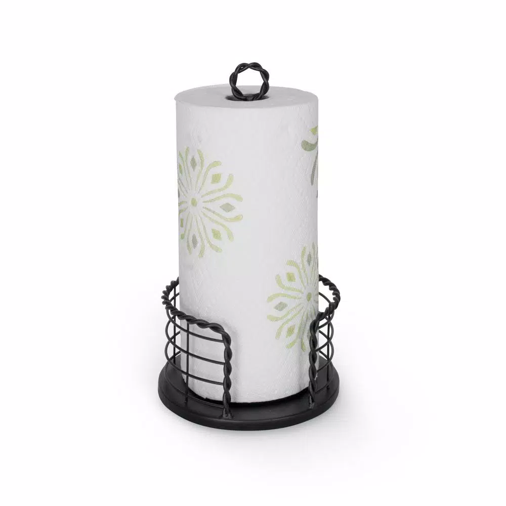 - PAPER TOWEL HOLDER FOR EVERY KITCHEN: This paper towel stand is a must have for every kitchen. Braided design goes with every existing aesthetic. Holder can accommodate every size paper towel, including jumbo rolls.