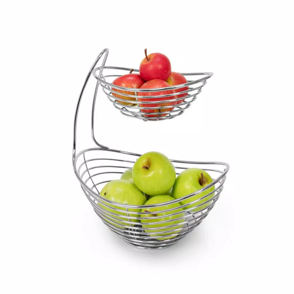The Opus Arched 2-Tier Server keeps a fresh assortment of your favorite fruits and vegetables in one convenient location. 2-open bowls allow fruits and veggies to ripen evenly while offering quick and easy access to stored items. The contemporary oeuvre construction will add an artistic flair to any kitchen. Made of sturdy steel.