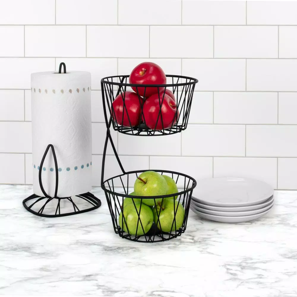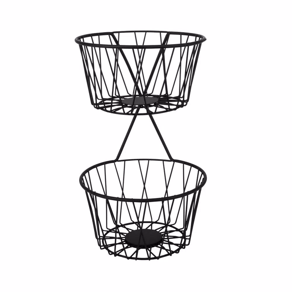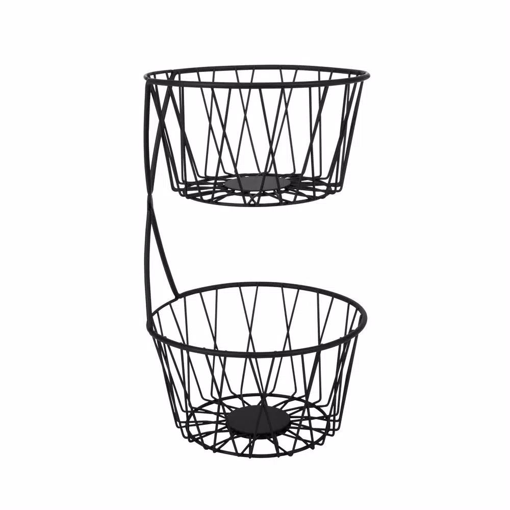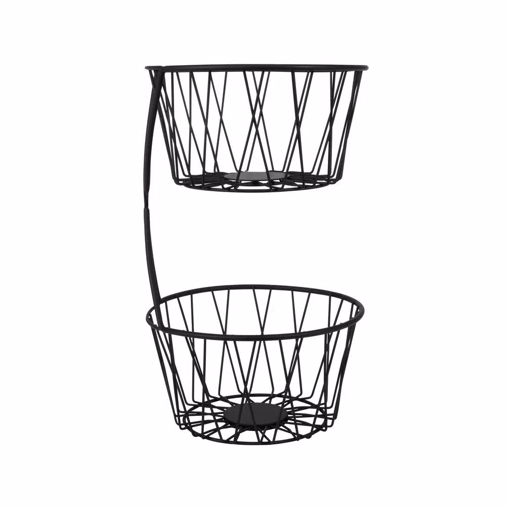 Create an upscale look in your kitchen or dining area with the Paxton 2-Tier Server by Spectrum. The rustic twist design fits perfectly with todayโs farmhouse appeal to give your space a sophisticated appearance. 2-open bowls keep fruit, vegetables and other grab-and-go snacks neatly stored and easily accessible. A handle provides portability from room or room or for transferring outside for easy entertaining. Made of sturdy steel.