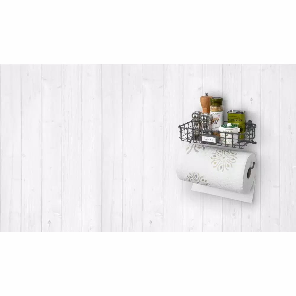 The Vintage Living Wall Mount Basket with Paper Towel Holder is the perfect home dรฉcor item, combining style with functionality. Use this wall basket to easily display essential items in an easy to grab location, while also keeping your paper towels in one place. This organization tool can help declutter countertop space in the bathroom or kitchen, while keeping paper towels in a safe and dry location. The wall shelfโs open wire basket design clearly displays items so theyโre easy to find when needed most. Home dรฉcor item is easy to install and comes with all the required hardware, including a movable faceplate to easily label the basket. In addition, the paper towel holder can hold various towel sizes without jamming. Rolls are easy to replace and always in reach. Dimensions of the wall basket are 7.5โ H x 12.5โ W x 6.25โ D. The Vintage Living Wall Mount Basket with Paper Towel holder is made from steel material and includes all installation hardware. Wall basket is not dishwasher safe. Wipe clean with a damp cloth and dry thoroughly with a towel.