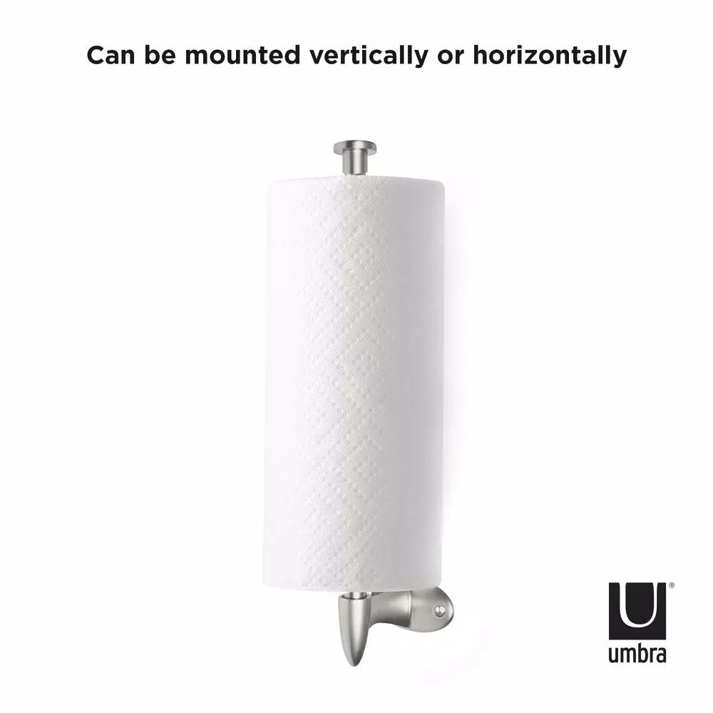 - RETRO-MODERN DESIGN: Umbras STREAM Paper Towel Holder has a modern yet retro twist, with its nickel finish and bullet shaped finials