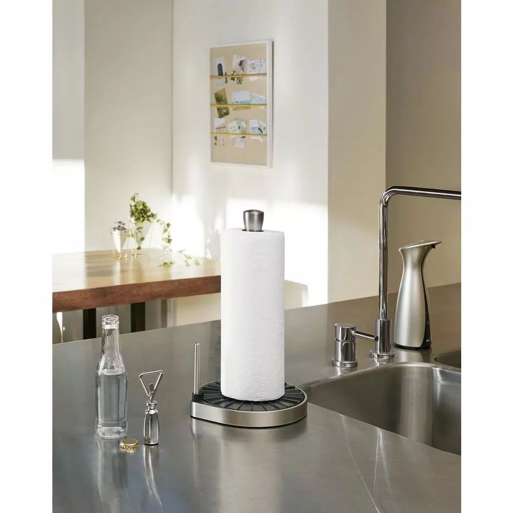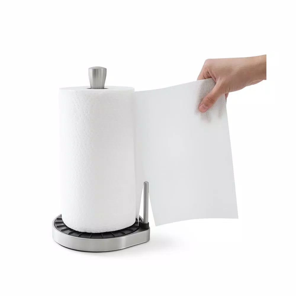 - WEIGHTED BASE: Large, weighted base stabilizes the paper towel holder for an easy, one-handed tear
