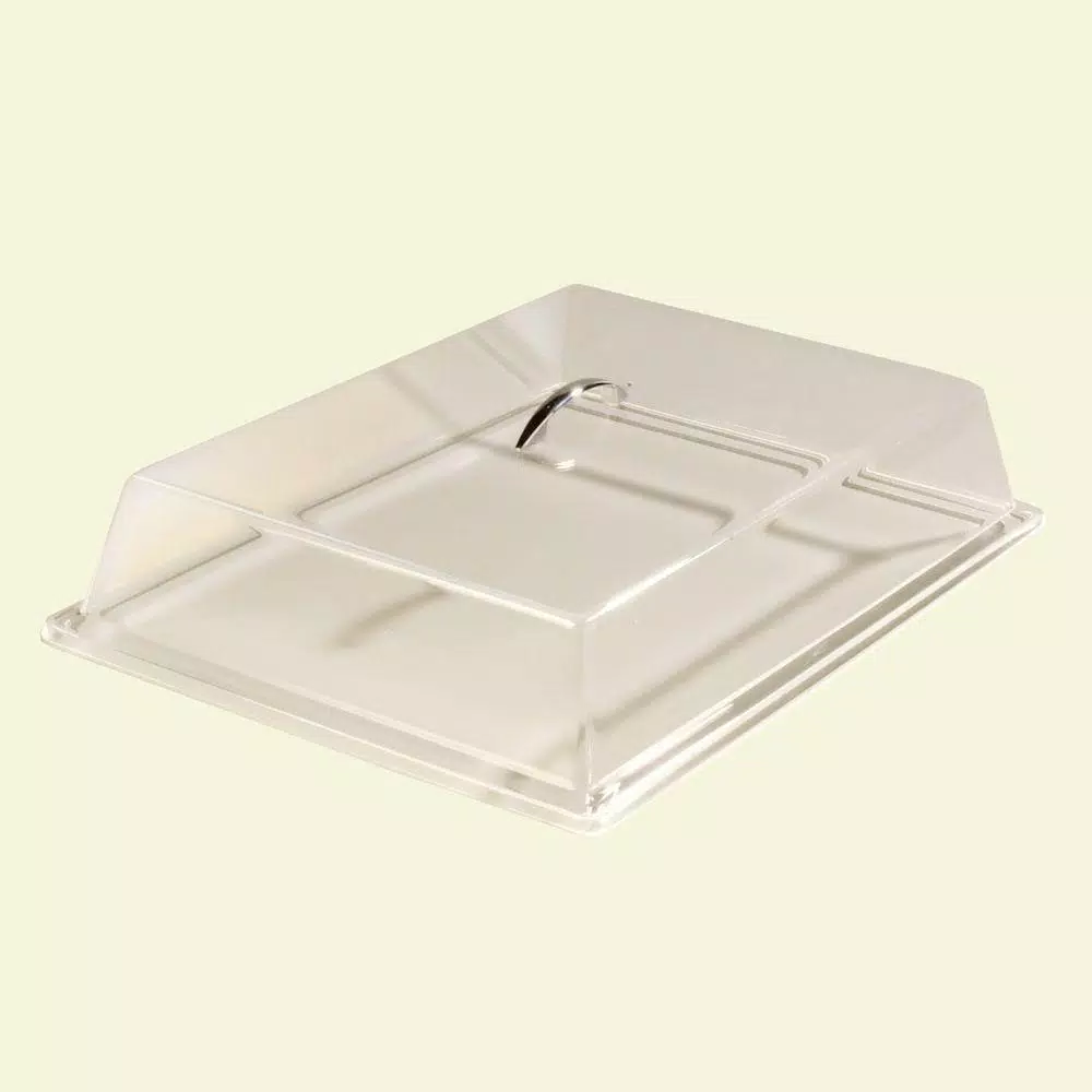 The smaller sized 13 in. x 18 in. x 3.25 in. solid Pastry Tray cover fits 13 in. x 18 in. fiberglass and plastic trays to merchandise packaged goods and fresh baked goods where counter space is limited. Perfect for impulse locations near cash registers and atop deli cases. Constructed of sturdy and clear acrylic.