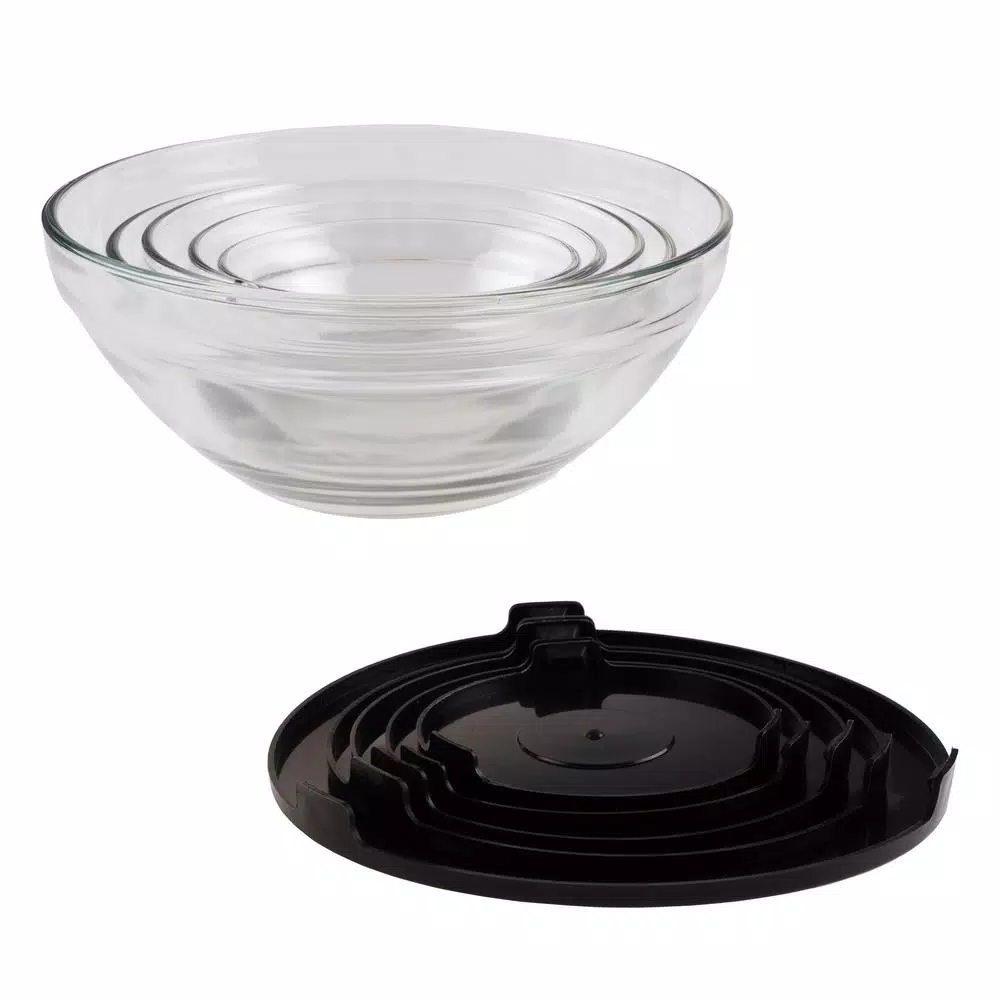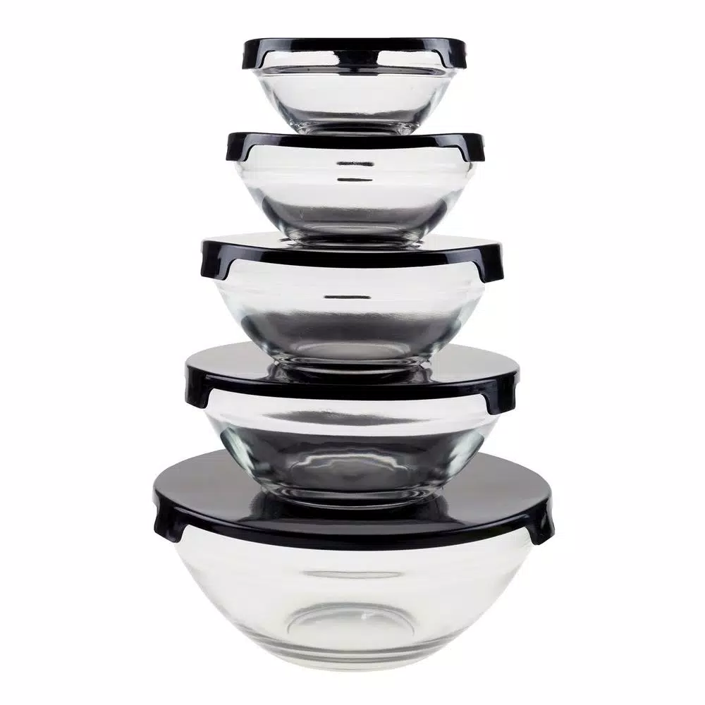 - Set includes 28 oz. bowl, 14 oz. bowl, 12 oz. bowl, 6 oz. bowl, 4 oz. bowl, and 5 matching lids