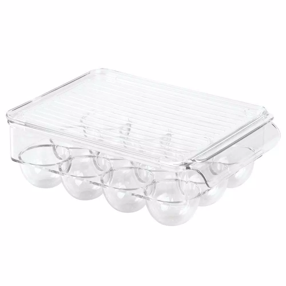 Keep eggs protected and organized with the interDesign Egg Holder. Made of sturdy plastic, this unique item holds up to 12 eggs and features a lid and built-in handle. Perfect for maximizing your refrigerator space.