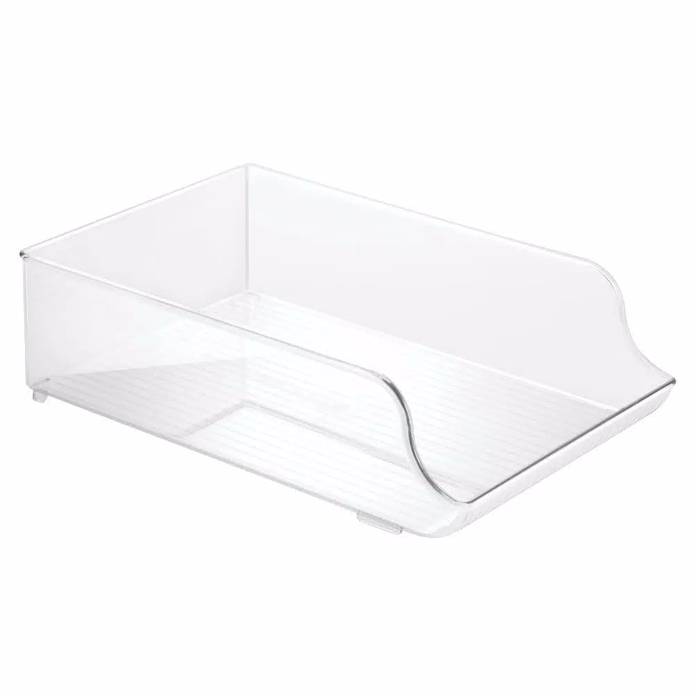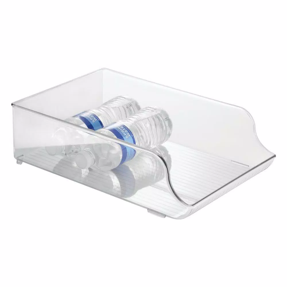 The interDesign Water Bottle Holder is your solution to keeping your favorite waters cold and conveniently stored. This item has a gravity feed release system for the bottles. Designed to work in all types of refrigerators and freezers.