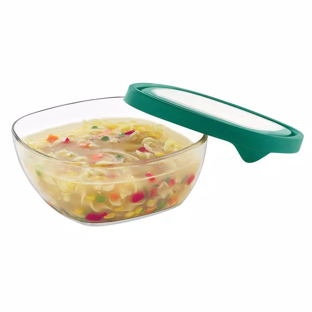 - Includes three, 6.25-cup square glass containers with BPA-free turquoise lids