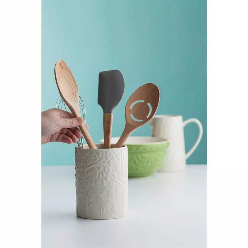 - Durable stoneware: made from high-quality, chip-resistant stoneware that does not stain, absorb odors or harbor cooking flavors; easily and neatly store cooking utensils like spatulas, ladles, spoons, whisks and more