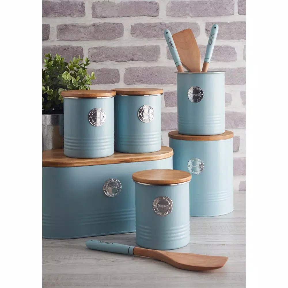 Living Storage in blue. Hard wearing and durable. High quality manufacture. Air tight seal. Strong seamless construction. Bamboo wood lid sourced from sustainable forests. Living Bread Bin.