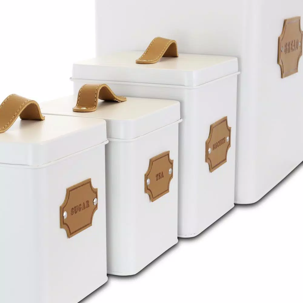 Preserve the freshness and quality of your food with the MegaChef Kitchen Food Storage Organization Canister Set. Featuring a pull style handle lid and labeled badge, this storage set is ideal for any kitchen. Ensuring your food will be kept fresh for weeks to come, each canister is crafted of metal with a white finish throughout and can hold up to 3.5 cups of your favorite coffees, teas, and sweeteners. Bread and biscuit box is also ideal for keeping your fresh breads just as fresh as the day you put them in and your biscuits nice and crunchy. Each container has a matte white finish and is labeled for your convenience.