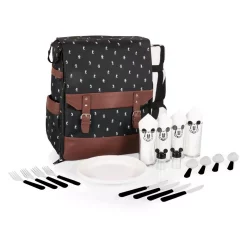 Carry your dream picnic on your back, impressing your date and reppin’ the magic along the way. Of course the Mickey Mouse Picnic Backpack features the world’s most iconic mouse in a tasteful silhouetted pattern across the outside and smiling out from the neatly stowed picnic blanket. A front pocket on this special picnic backpack contains deluxe service for 4: 4 sets of stainless steel flatware, 4 plates, 4 tumblers, 4 polyester-cotton napkins and even salt and pepper shakers with Mickey Ears. Straps secure all the picnic set’s service items nicely. Inside, the insulated cooler compartment is deep enough to fit beverages, food and ice packs. This Mickey fits on a camping trip, too.