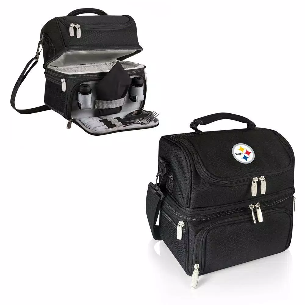The Pranzo is an insulated lunch box that features isolated sections so you can separate your hot and cold food and drink items. Made of polyester (exterior and interior), the Pranzo also features an adjustable shoulder strap, soft grip handle, side mesh pockets and a hidden flatware section complete with 1 (18/0) stainless steel fork, knife and spoon, 1 set of salt and pepper shakers (plastic with twist cap) and 1 napkin (100% cotton, 14 in. x 14 in.). The Pranzo is perfect for school, work, day trips and gift giving occasions.