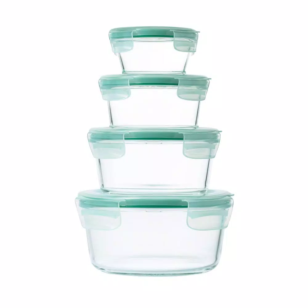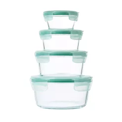 Storing Food is a SNAP. From bringing meals on the go to storing tasty homemade treats for later, OXO Good Grips SNAP Glass Containers are the perfect way to keep your meals fresh. This Set features 4 borosilicate glass Containers with matching leak-proof lids. The Containers are made of thermal shock-resistant borosilicate glass, so they can be kept in the refrigerator or freezer, and they can go straight into the microwave or oven for reheating.