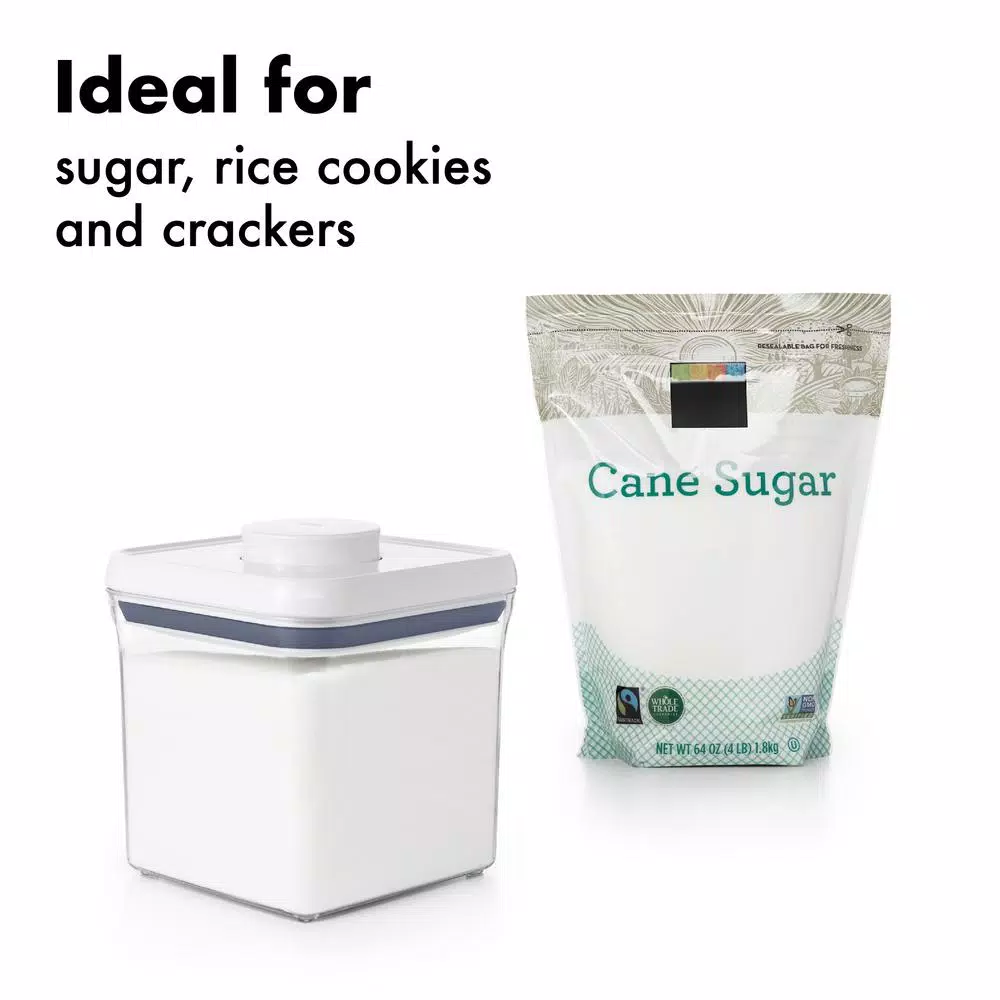 - 2.4 qt container is the ideal size for rice, cookies, crackers and more