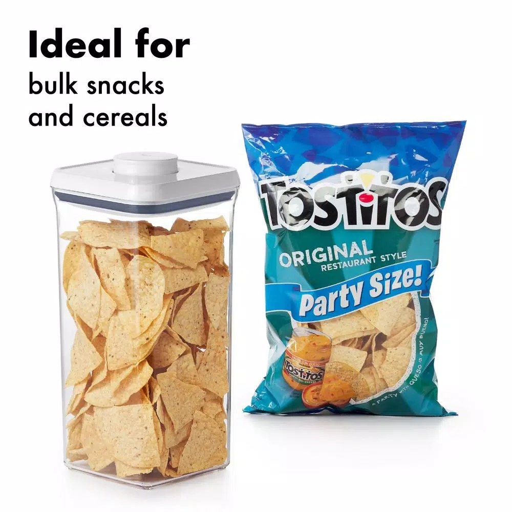 - 5.5 Qt. container is the ideal size for bulk cereals, pretzels, chips and more