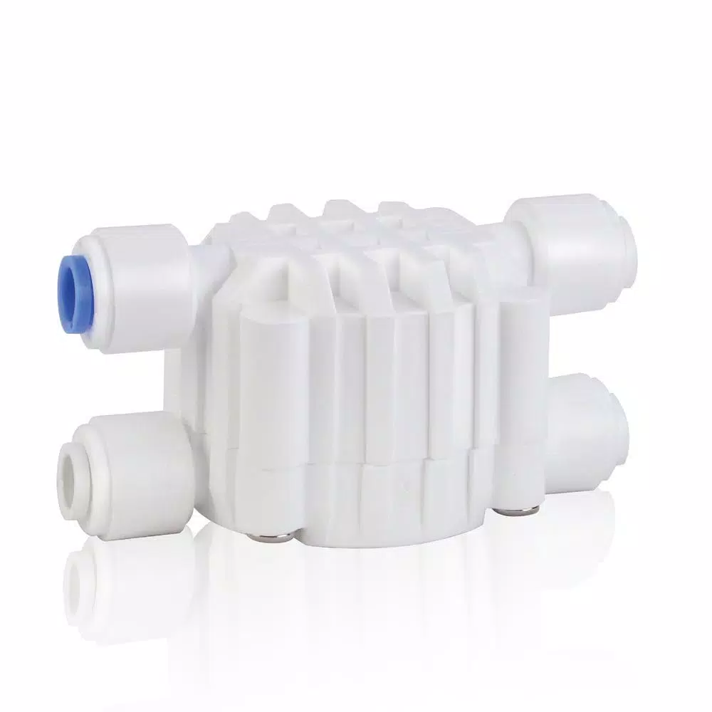 This 1/4 in. Quick Connect ASO valve allows your system to turn off the water supply when the tank pressure reaches approximately 65% of the supply water pressure. Without the auto shut-off valve, water will rush through the system wearing down components and sending purified water down the drain after the reserve tank is filled. It is compatible with APEC under-sink reverse osmosis systems.
