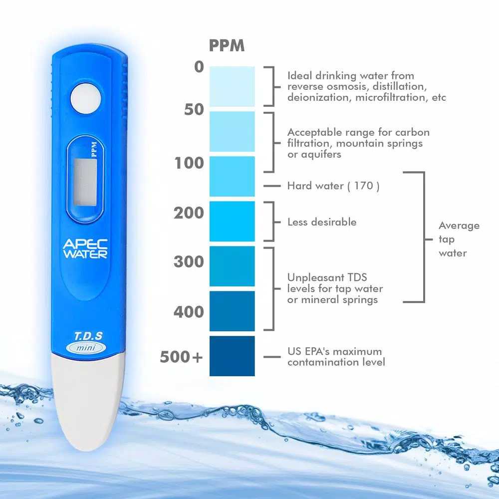 TDS stand for Total dissolved solids, which includes Salt, metal or mineral in the water. A TDS meter is an easy to use hand-held digital meter to instantly check your overall water quality. It allows you to stay on top of your drinking water quality at all times! with the push of a button, the TDS meter can tell you your overall water purity level, which will be displayed on the screen measured in parts per million (ppm). the lower the number showing on the TDS meter means the purer the water quality, with 0 ppm being perfect and pure water. The TDS meter is a great tool for water filtration, water purification and drinking water. It is also great for checking your tap water quality, or knowing when to change your filters for your water filter systems. Replaceable 3V battery and vinyl case included specifications: range: 0-1999ppm tds sensitivity: 1 ppm tds probe material: stainless steel storage temperature: 0°C 80°C operating temperature: 10°C 40°C dimension: 128mm (L) x 25mm (W) x 20mm (h) weight: 1.24 oz. Battery type: 3V Cr2032 factory calibrated: calibrate with a 300 ppm 442 solution.