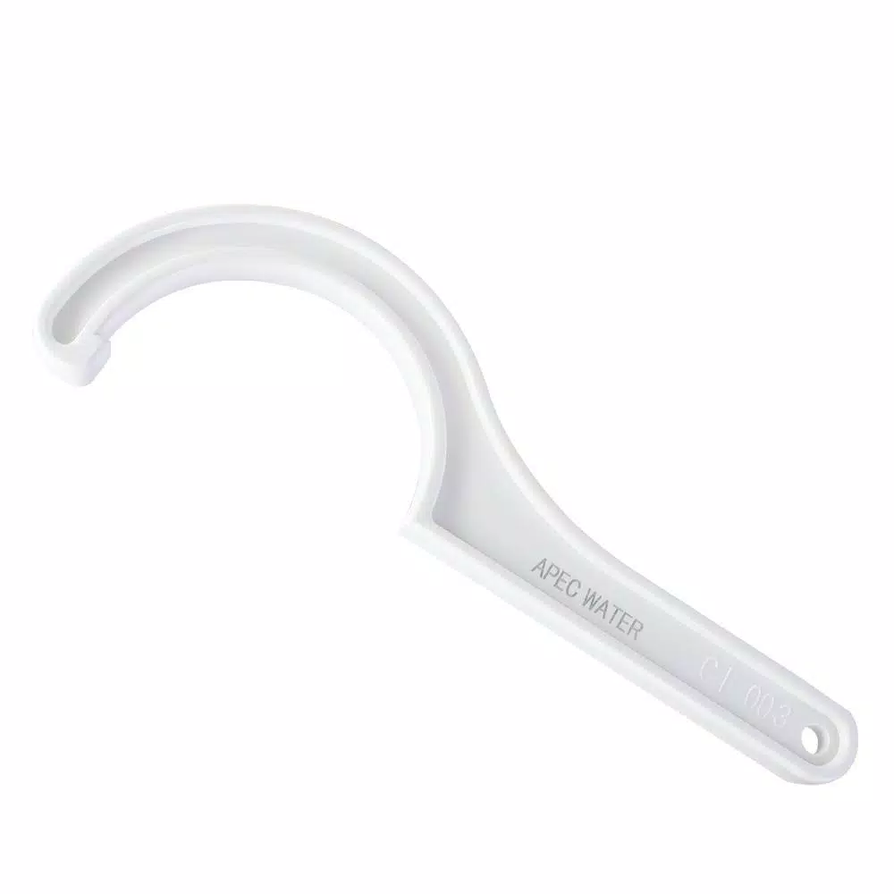 APEC 180° half circle shape filter housing wrench makes filter housing change much easier compare to use traditional standard circle wrench. It is an essential and durable accessory for under sink reverse osmosis system maintenance. This filter wrench fits most of the 10 in. industry standard size filter housing.