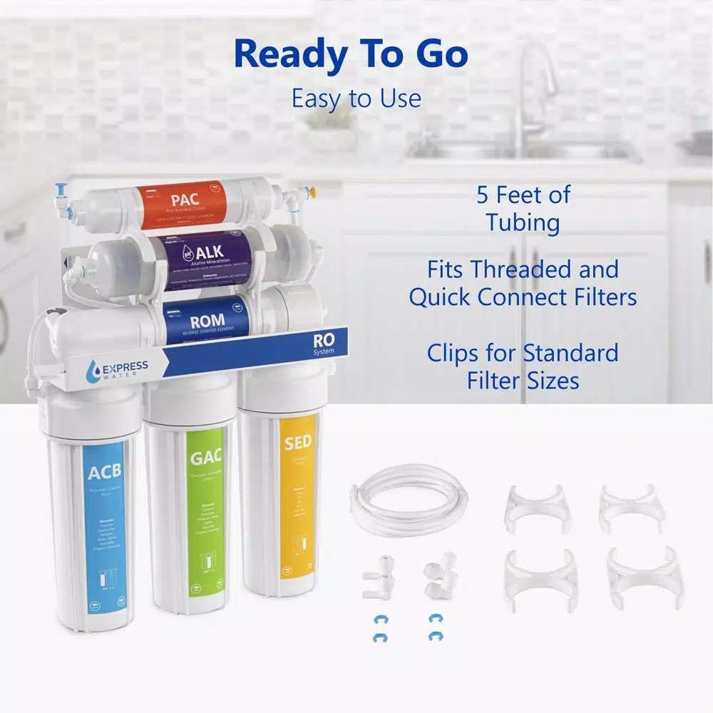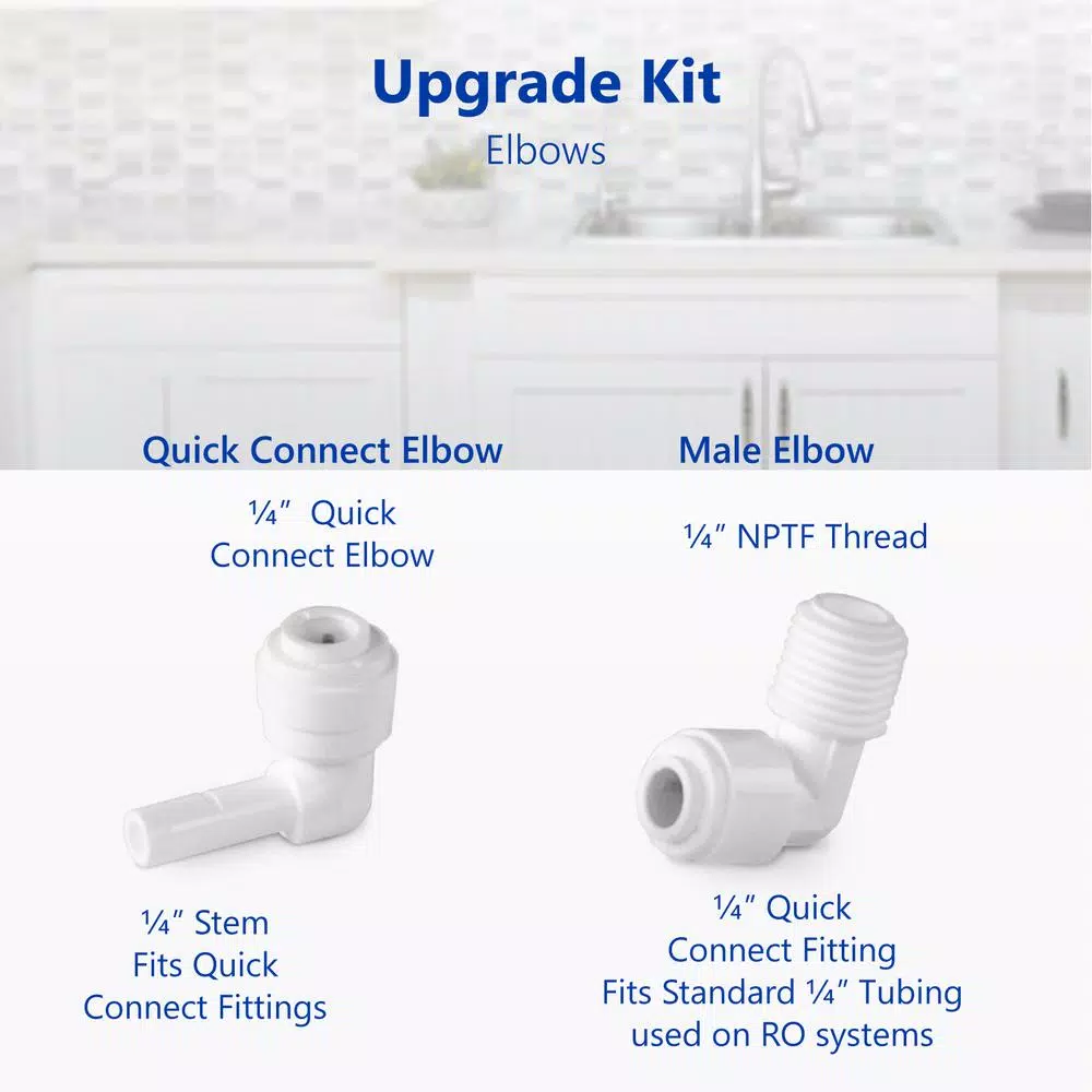 Upgrade your filtration and your home with an easy setup Filter Upgrade Kit. This kit is compatible with all standard reverse osmosis and undersink filtration systems. The kit uses quick connect fittings and mounts to the filter(s) on top of your system. With a simple, durable, food grade design keeping your water tasting great and your home safe is simple. The entire kit is made of temperature resistant polypropylene so it doesnโt warp or affect the taste of your water. The BPA free construction ensures that your system is kept completely pure. You may need additional fittings installation if you are installing a non-standard filter. The package includes 2 male elbows, 2 stem elbows, 5 ft. of white tubing, 4 lock clips, and 4 filter clips. Get the most out of your filtration. Choose the reliable easy to upgrade your water: The Express Water Filter Upgrade Kit PRTUPKIT14 is the best in water purification.
