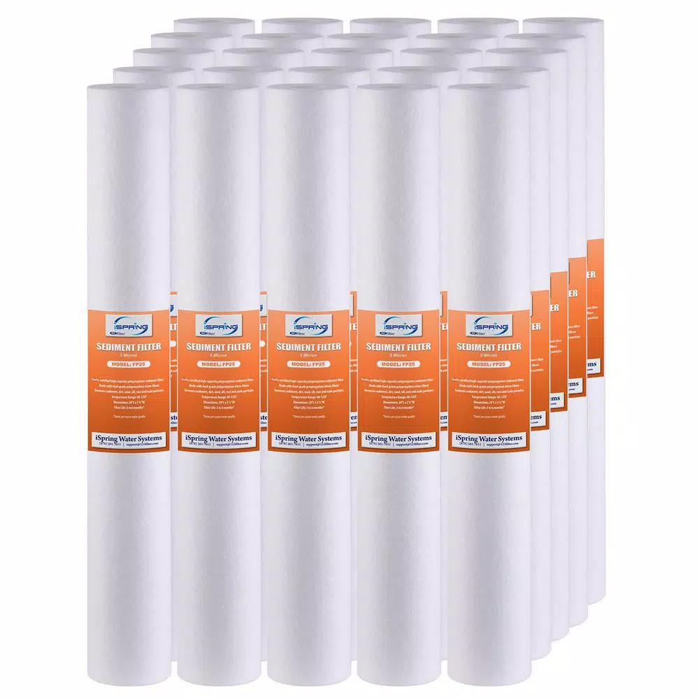 Water Filtration Systems ISPRING High Capacity 20 In. X 2.5 In. Water Filter Replacement Cartridges Fine Sediment Filter – 5 Micron (25-Pack)